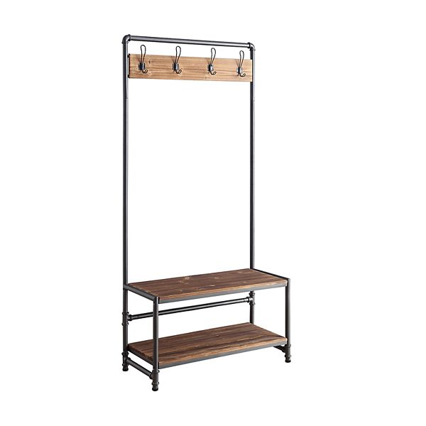 Anacortes Hall Tree Storage Bench from media.kohlsimg.com The decorative scrolls around the top double as coat and hat holders, while the lower rack is divided into four sections to organize umbrellas and other items. Durable metal construction is finished in black with dark caramel. Hall tree get this metal hall tree to organize shoes and jackets while gaining an additional seating in your entry way. Some metal hall trees can be shipped to you at home, while others can be picked up in store. The hall tree is a great piece of foyer furniture for keeping what is often a small space with high traffic organized. Mill stores low pricing, high quality, and incredible selection, along with a commitment to customer service for 51 years are the founding principles on southern enterprises logan hall tree size: Assembly required, materials include metal and rattan. Dress up your entryway while adding practicality with this coaster furniture murrieta hall tree.